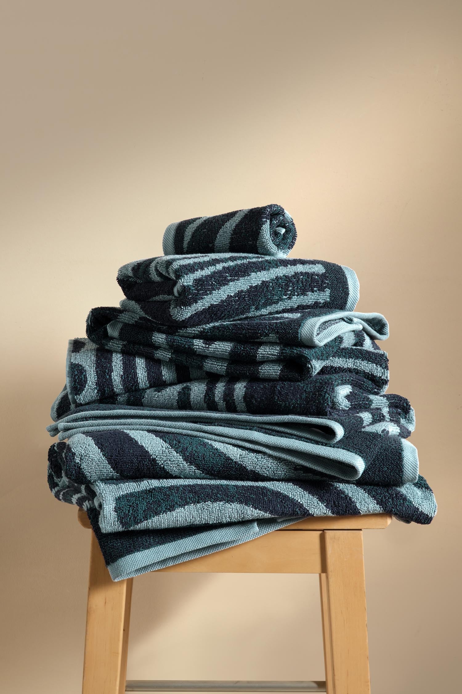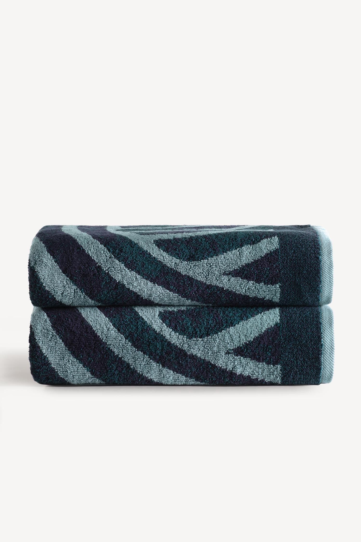 Pluma 2’li banyo havlusu seti, pamuk dokusunun sunduğu yüksek emiciliği modern ve akışkan bir desen diliyle bir araya getirir. Derin petrol tonunun şık görünümü, banyolara çağdaş bir zarafet ve enerjik bir atmosfer katar.