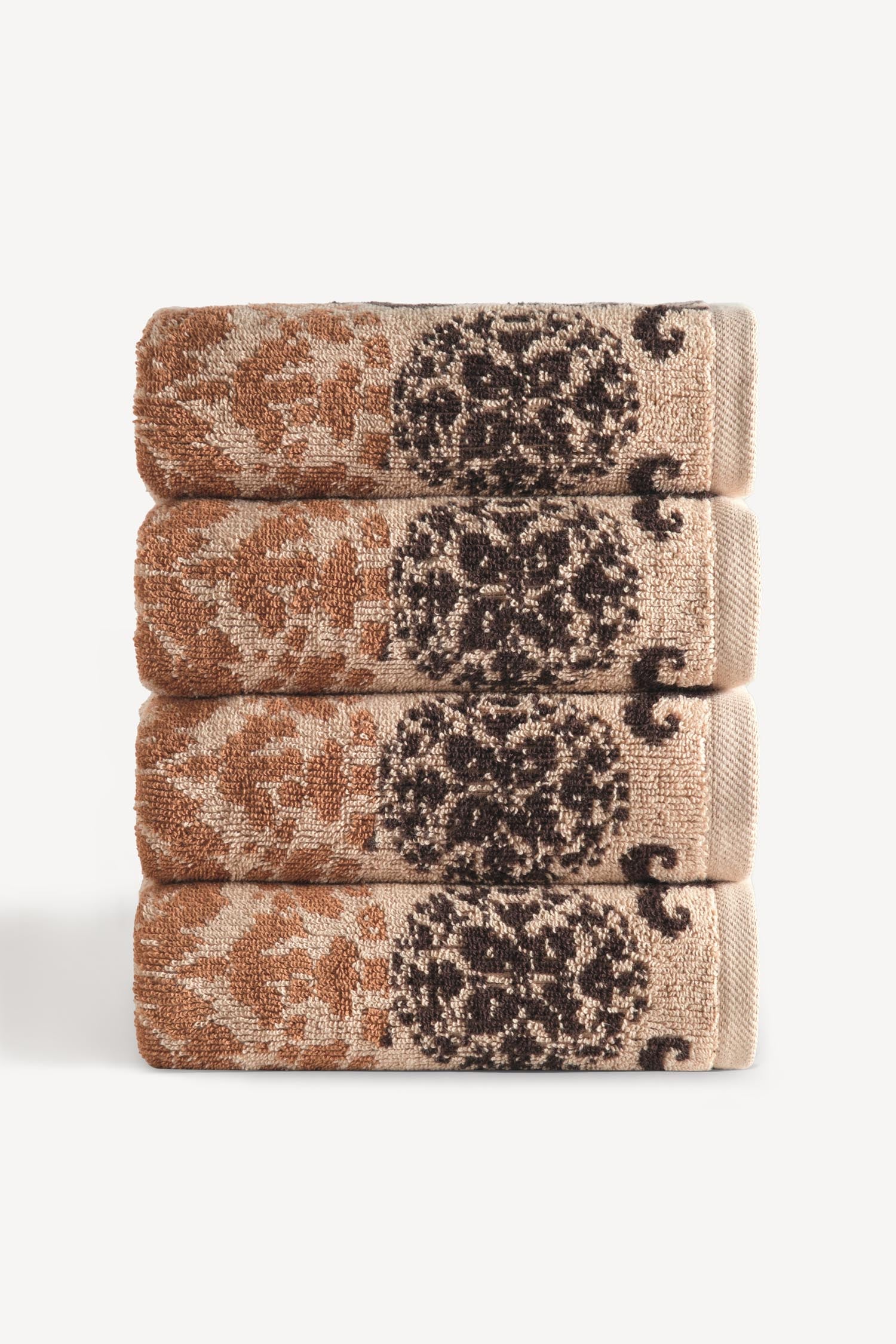 Matilda İpliği Boyalı 4’lü El Havlusu Seti Karamel