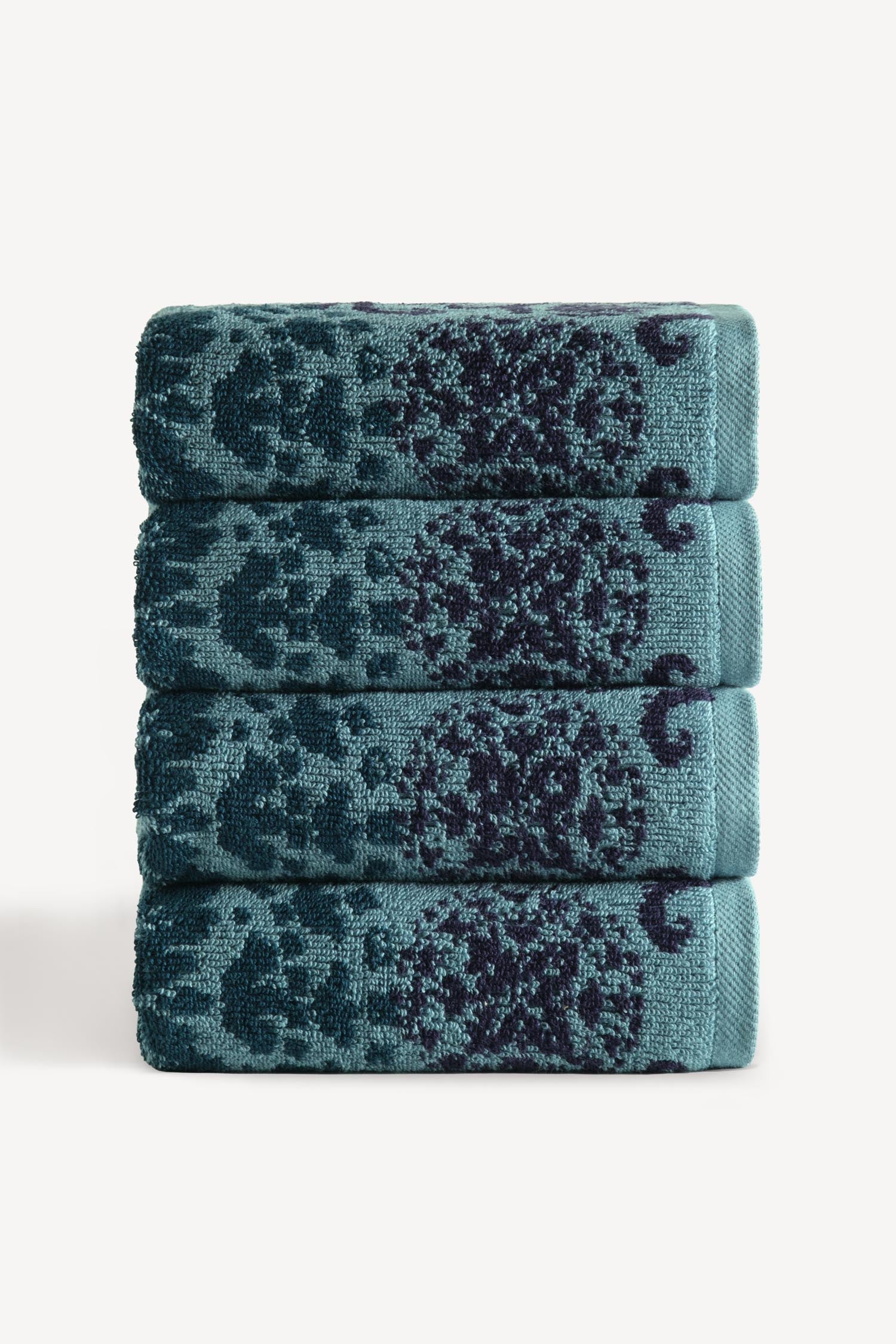 Matilda el havlusu seti, pamuk dokusunun sunduğu yumuşaklık ve yüksek emicilik sayesinde günlük rutinleri daha konforlu hale getirir. Dört parçalık pratik set, klasik desenlerin modern renklerle buluştuğu zamansız bir şıklık sunar.