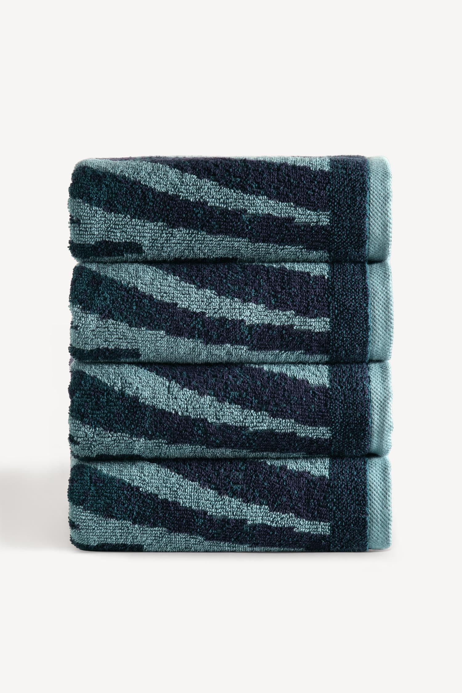 Pluma 4’lü el havlusu seti, pamuk dokusunun sunduğu konforu grafik bir tasarım diliyle birleştirir. Derin petrol tonu, banyolara modern bir ritim ve dikkat çekici bir zarafet ekler.