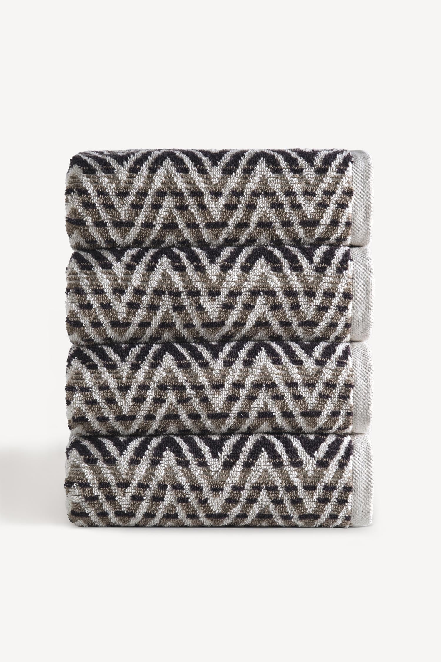 Zyon 4’lü el havlusu seti, yumuşak pamuk dokusunu geometrik bir çizgi ritmiyle tamamlar. Taş tonunun doğal görünümü, banyolara sade ama dikkat çekici bir modernlik kazandırır.