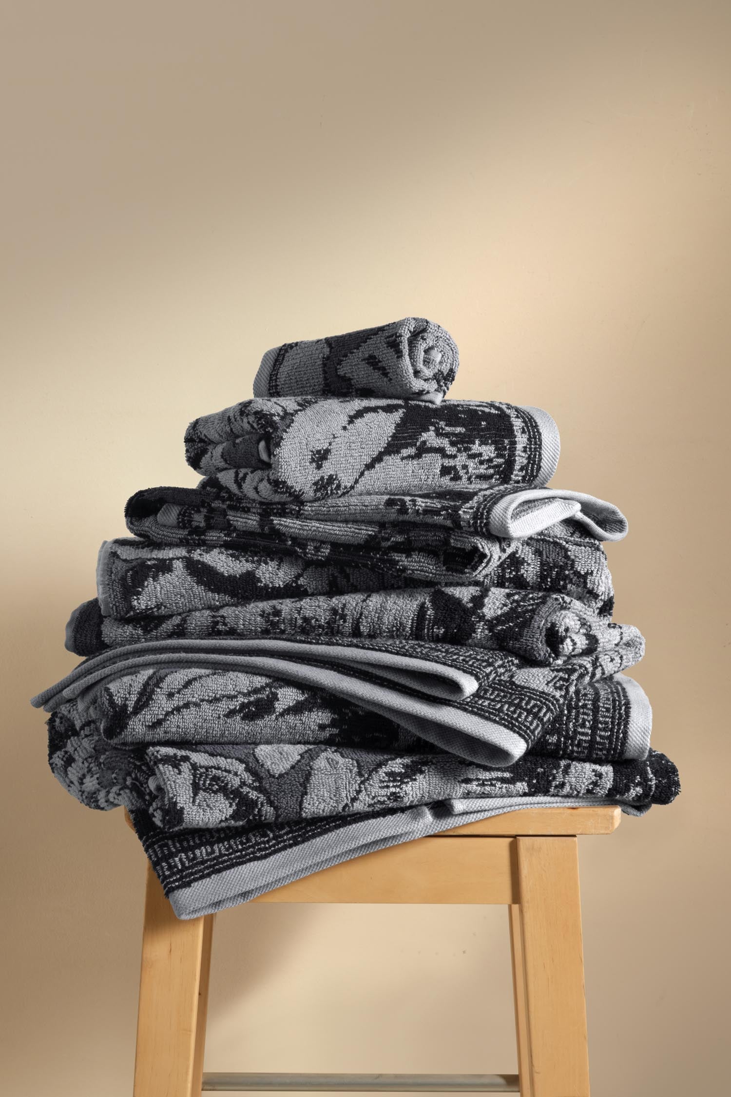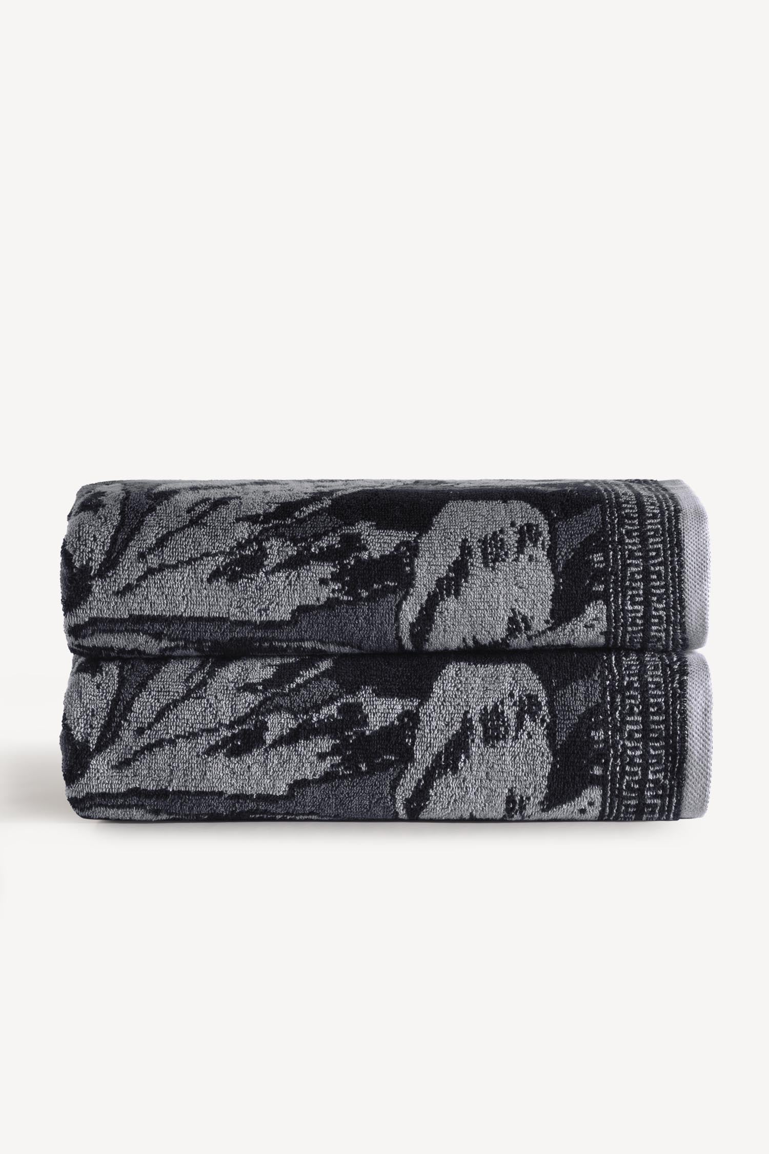 Caressa banyo havlusu seti, pamuk dokusunun sunduğu yumuşaklık ve performans ile banyolara modern bir şıklık getirir. Antrasit rengiyle minimalist, düzenli ve zamansız bir görünüm sunar.