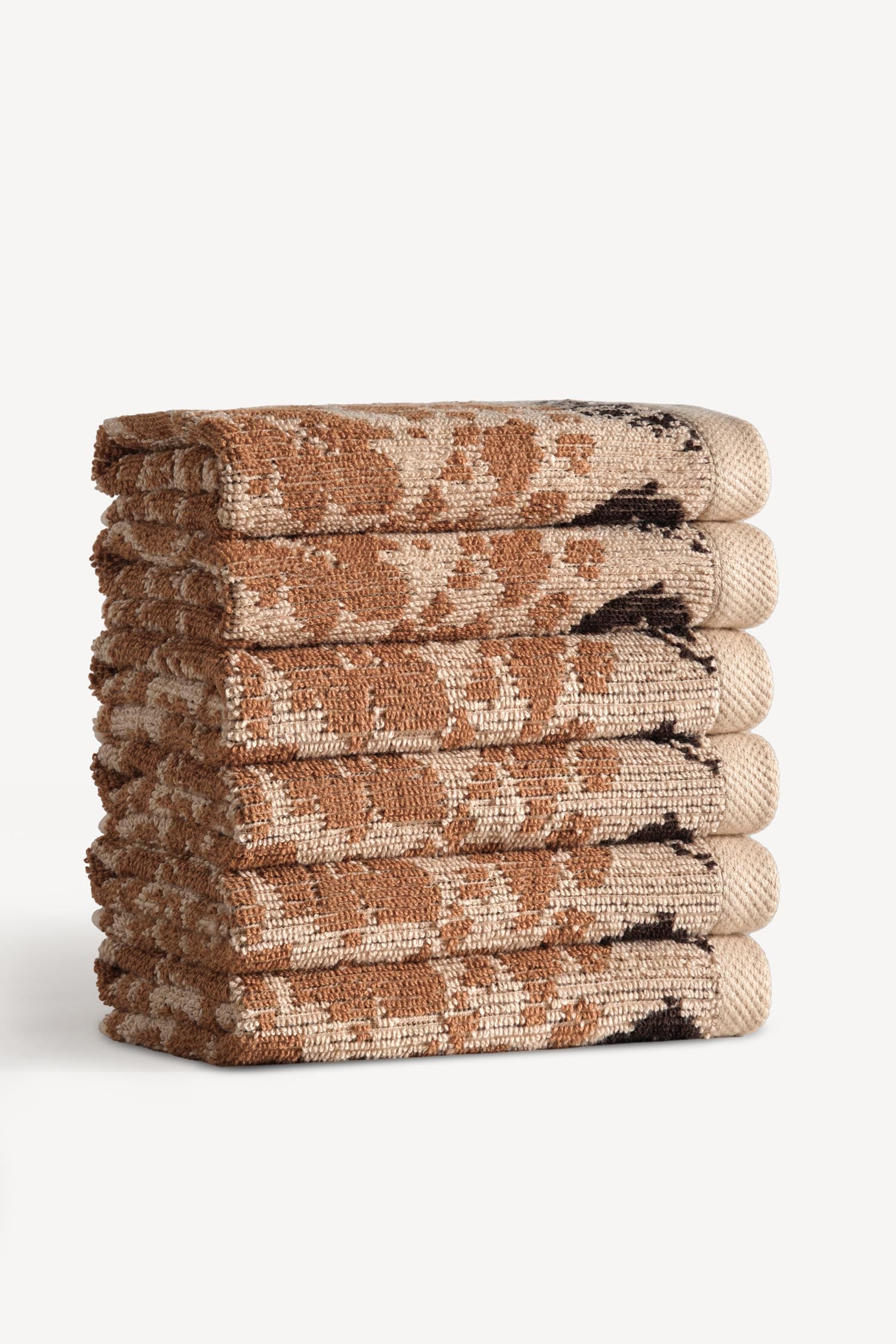 Matilda İpliği Boyalı 6'lı Misafir Havlusu Seti Karamel
