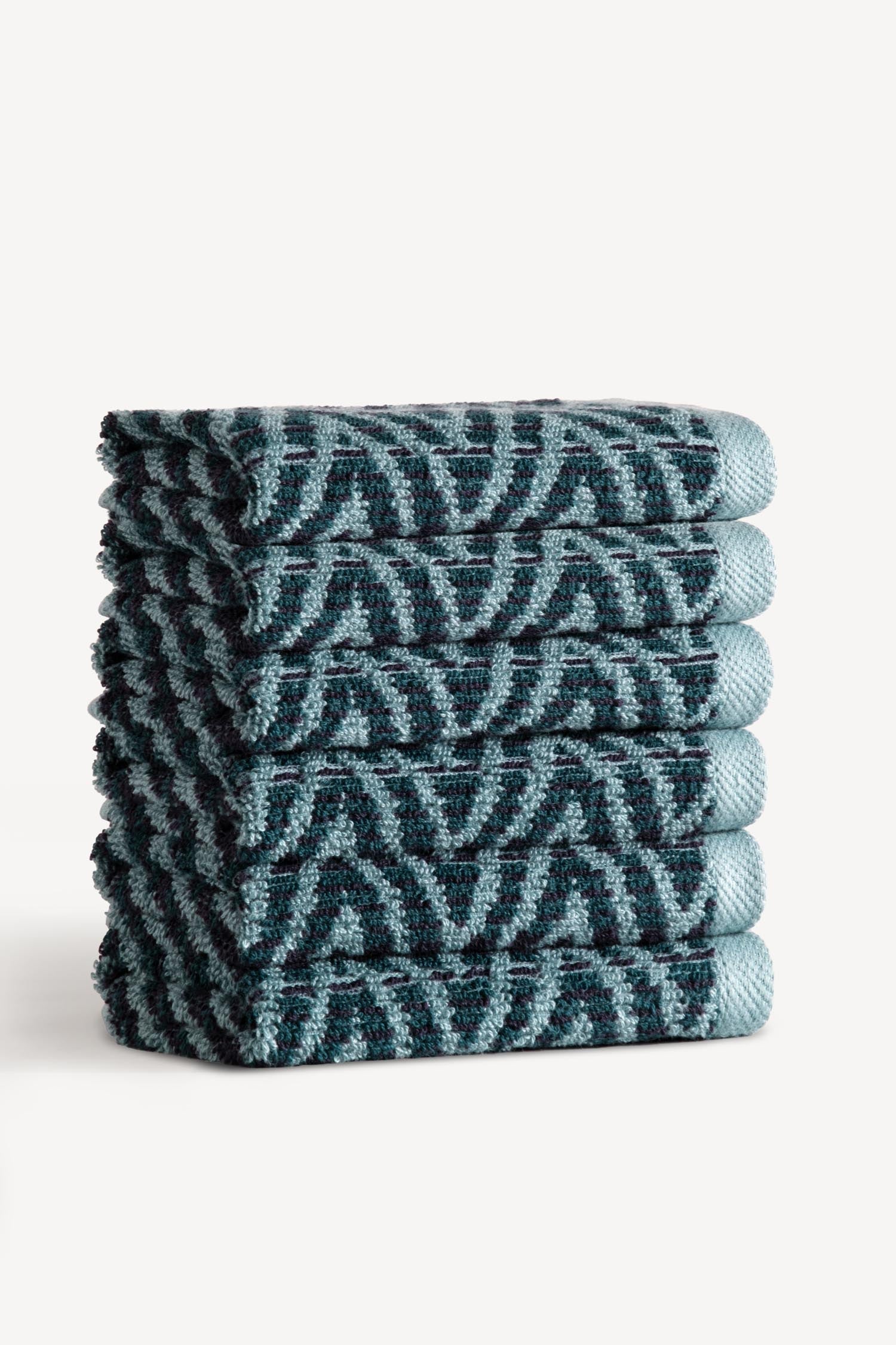 Zyon 6’lı misafir havlusu seti, pamuk dokusunun yumuşak yapısını modern zigzag çizgileriyle bir araya getirir. Petrol tonunun derin ve çağdaş görünümü, misafir sunumlarına enerjik bir şıklık kazandırır.